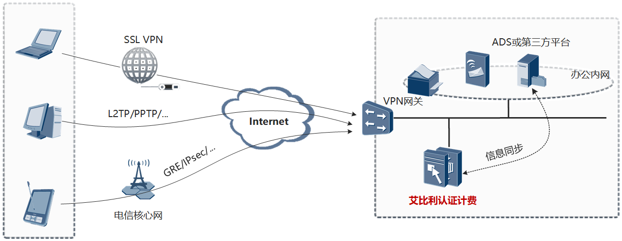 VPN是访问企业内网最便利、最安全的方式之一,艾比利在VPN接入领域积累了丰富的经验。就VPN接入场景而言,大致分为三类: